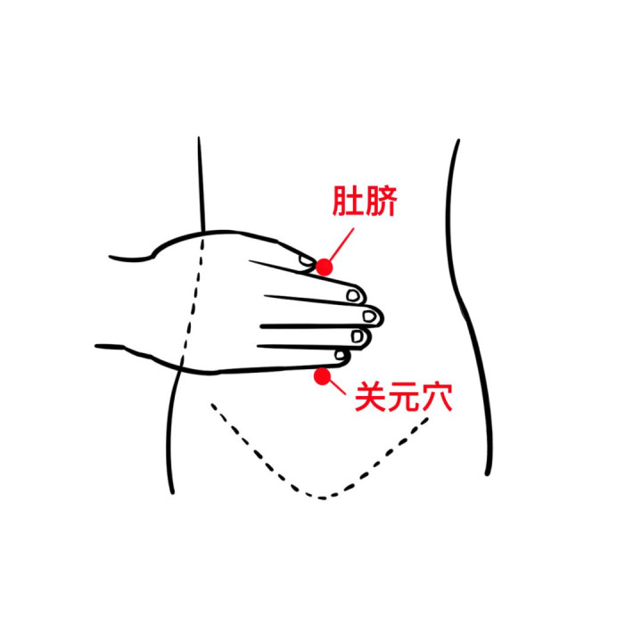 位置:关元在脐下3寸,你的四指相并即是3寸,把四指相并,上沿紧挨着肚脐,下沿与肚脐相对的处所即是关元穴。
